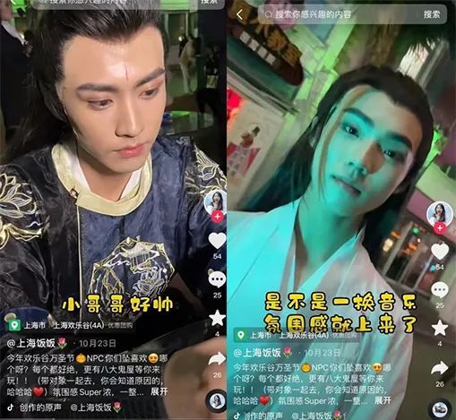 和小寒相似,广州游乐园就有一位在万圣节上扮演“宁采臣”的NPC近期在抖音上走红。