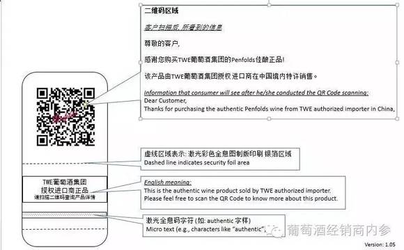 据酒业家 葡萄酒经销商内参向富邑集团了解,针对市场的假冒奔富情况,从2016年1月15日起,新批次的奔富葡萄酒陆续启用二维码查询方式,产品包装上,贴有一个防伪标签,使用微信扫一扫功能,对着二维码直接扫描即可查询是否为官方授权经销产品(如下图)。而且,只有行货才有这一防伪功能。