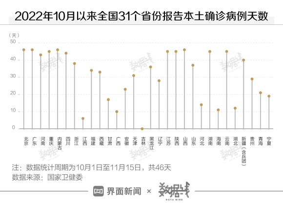 据国家卫健委数据,在10月1日至11月15日期间,有12个省份报告本土确诊病例的天数在40天以上。