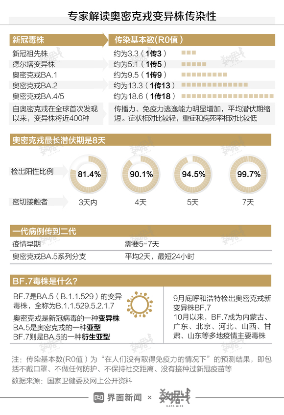 今年9月底,奥密克戎变异株BF.7首次在国内被检出。10月以来,BF.7已在多地引发多起疫情,成为内蒙古、广东、北京、河北、山西、甘肃、山东等多地疫情的主要毒株。