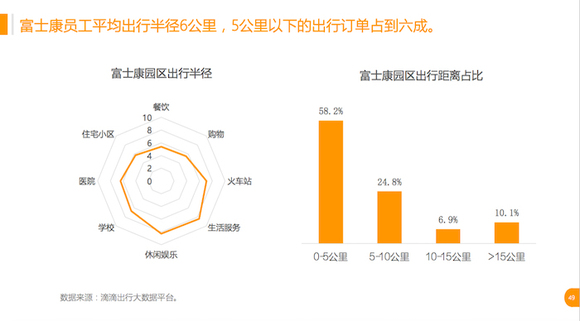 这份《报告》是基于滴滴平台2016年1月至7月全量数据梳理而成,其中比较有趣的是滴滴对于珠三角四大工业园区的数据分析,园区分别是深圳富士康、东莞步步高、佛山美的以及珠海格力电器。
