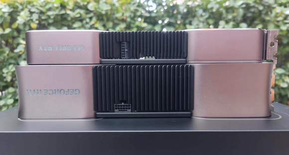 RTX 4080(下)与RTX 3080Ti(上)的厚度对比