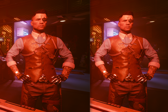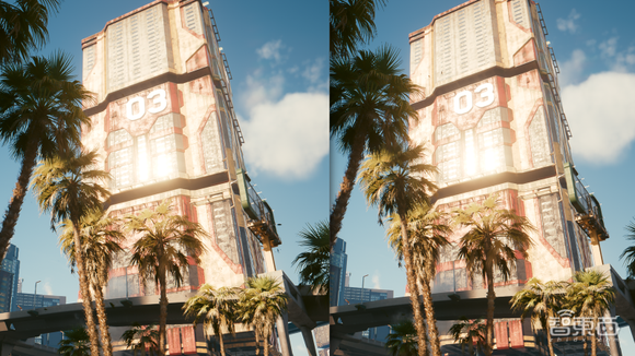 《赛博朋克2077》,左:DLSS 3,右:DLSS 2