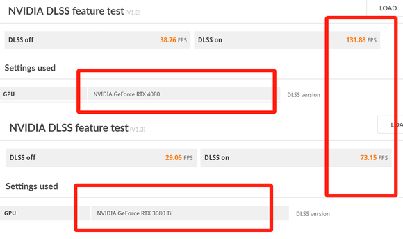 在3DMark软件中针对性的DLSS性能测试中,RTX 4080相比RTX 3080Ti的提升幅度超过了80%,这一成绩也可作为DLSS 3在游戏中能够带来的平均帧数提升的参考值。