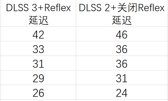 在实际游戏过程中,DLSS 3+Reflex模式下,游戏的延迟甚至比普通关闭Reflex模式下的延迟更低。也就是说,DLSS 3配合Reflex功能,实现了帧数提升和延迟降低的兼顾。