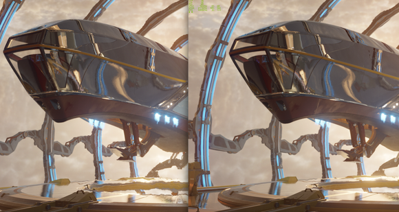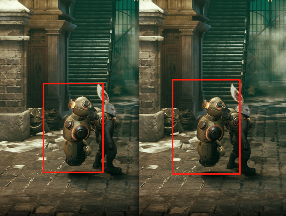 《暗影火炬城》DLSS画面对比,左:DLSS 3,右:DLSS 2