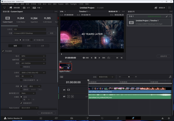 而同样一段视频,RTX 4080在AV1格式下的导出时间仅为14秒,速度同样很快。