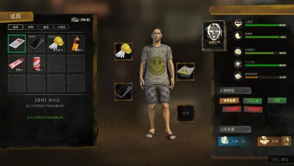 此外,玩家还要应对衣服整洁,个人卫生,食物满足感等三个额外指标,时刻留意自己的情绪变化,防止大业未成而中道崩殂,这种几乎模拟现实生活的玩法,也极大的强化了玩家的带入感。