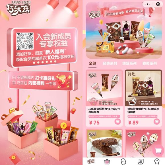 据公开报道,2022年4月,巧乐兹Chocliz小程序成为每年几亿支棒签的第一流量承接平台。私域运营不到2年,私域会员数超过千万,人均用户停留时长近100s,巧乐兹成为了伊利TOP私域品牌。[4]