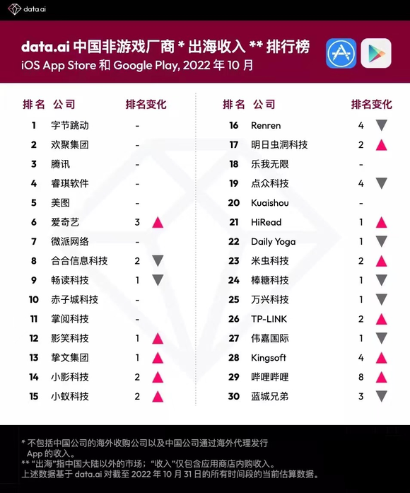 根据data.ai发布的一份中国非游戏厂商“出海收入”排行榜显示,在统计的30家中国出海公司中,陌陌海外收入排名第13。