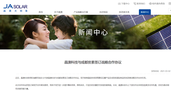 靳保芳被查期间,2021年3月,靳军淼以晶澳科技助理总裁的身份代表晶澳科技与成都炭素签订战略合作协议,双方就单晶硅热场用等静压石墨产品及成型保温毡制品结成深度战略合作伙伴关系。