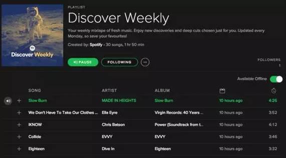 目前Spotify自有的“Chill”歌单拥有70万粉丝,“Dinner”歌单拥有30万粉丝,“Focus(舒缓钢琴曲)”歌单拥有200万粉丝。而这些歌单将再也不是唱片公司和音乐人的“专属”渠道了。
