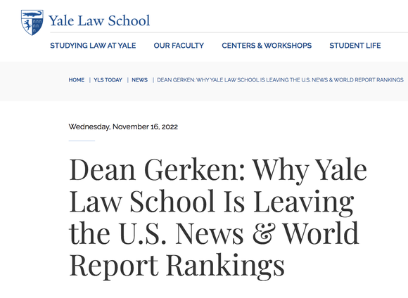 上述法学院认为U.S. News的排名标准关注的是考试成绩、就业情况等数据,而法学院应该关心的是道德、公平和使命。耶鲁大学法学院校长希瑟·格肯在公开信中表示,该排名阻碍了那些支持公益事业、支持基于需求的资助以及欢迎工薪阶层学生进入这一职业的项目,也破坏了法律职业的核心承诺。
