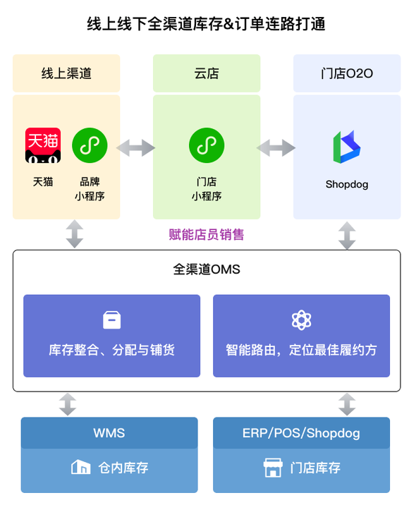 近年来,宝尊持续发力全渠道,系统化的解决方案也随之产生。2022年,宝尊正式推出了OMO(Online merging offline)解决方案,在宝尊现有的O2O解决方案的基础之上,融合宝尊现有的两款旗舰产品——云店、导购CPS,全面助力品牌实现门店的数字化升级。