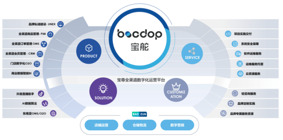 在强化全渠道数字化技术方面,宝尊的“TIC技术与创新中心”扮演着关键角色。该中心以上海和成都为基点,拥有1000多名IT设计师。TIC的核心产品包括以业务数据双中台为基础的PIM、OMS、CRM、官网小程序、OMO、数字化门店、AI、BI等多样化的解决方案。