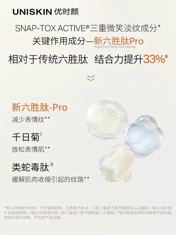 三、优时颜:小分子仿生肽X六胜肽,以超强抗皱CP切入眼霜市场