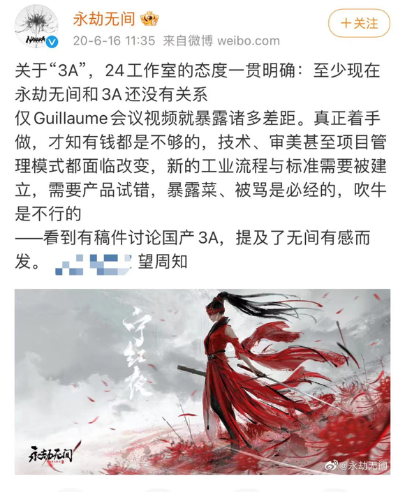 另外,比起玩家的兴奋,“国产3A”这个说法对于大部分开发组来说可能是否认三连:“3A?不不不,我们只是想尽力做好这款游戏罢了。”