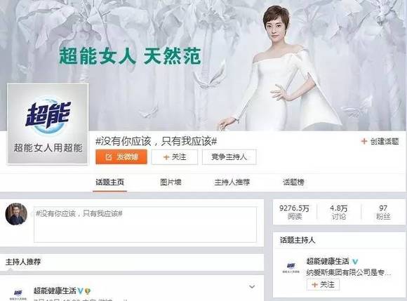 超能品牌通过孙俪+3个素人的TVC广告,传递出“没有你应该,只有我应该”的品牌记忆点,再通过众多行业意见领袖的集中扩散,形成话题效应,将用户的情感与品牌的价值诉求快速相连。