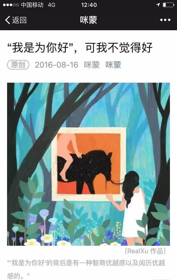此阶段一大波网红将线下线上的超能话题推到高潮,在8月16日咪蒙用一篇文章《“我是为你好”,可我不觉得好》对“没有你应该,只有我应该”的超能女人话题做了很好的诠释,并在底部直接上了超能广告海报。