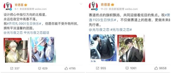 反观同为餐饮行业的肯德基,联名期间得到玩家一致好评,在联名结束以后,官博依旧在男主生日时送上规整的生日祝福,附上额外的联名海报。