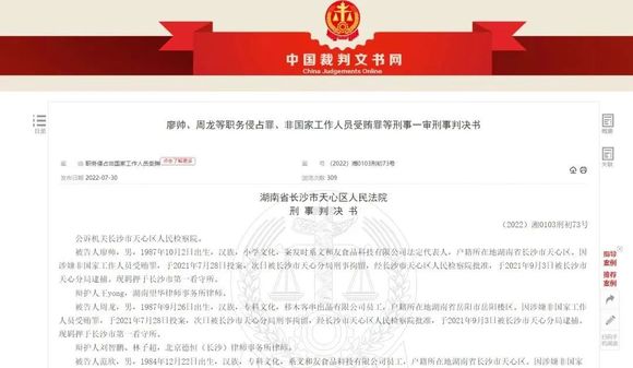 据澎湃新闻8月23日报道,时任文和友食品公司法定代表人的廖某等3名文和友食品科技有限公司员工,因犯职务侵占罪、受贿罪被法院判刑,涉案金额超百万元,将文和友再次推上舆论浪尖。