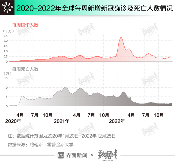 从全球范围来看,据世界卫生组织,截至2022年12月23日,全球累计新冠确诊病例超6.5亿例,全球累计新冠死亡病例超665.7万例。