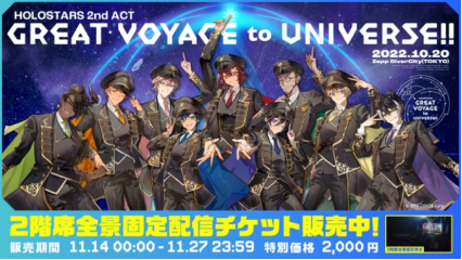 10月,男性VTuber组合“holostars”第2次全体演唱会“HOLOSTARS 2nd ACT 「GREAT VOYAGE to UNIVERSE!!」”在线上线下同步举办;
