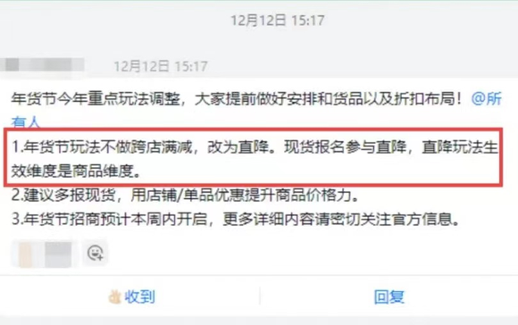 在淘宝年货节商家沟通会上,相关负责人表示,取消跨店满减仅针对本次年货节,未来大促是否延续还不确定。