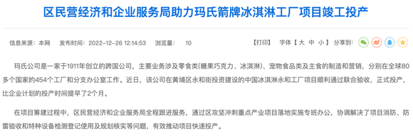 根据广州市黄埔区人民政府官网昨日发布的消息,玛氏在黄埔区永和街投资建设的中国冰淇淋永和工厂项目近日顺利通过联合验收、正式投产,比其计划的投产时间提早了2个月。
