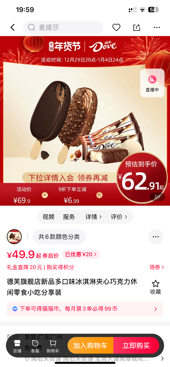 今天,小食代在玛氏的两个电商旗舰店看到,目前在售的冰淇淋产品均为之前进口的“洋产品”,产地包括了法国、波兰等。在天猫,进口自法国的德芙冰淇淋正在趁着平台的“年货节”做促销,“入门级”的买5赠3香草冰淇淋(50g)售价为49.90元。