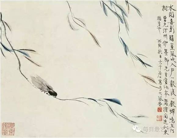 但是几年之后,张大千就对齐白石改观了。因为他带着长子和画友去四川青城写生。那个时候是大夏天,住房附近蝉声不断。张大千想起齐白石当时对他的画作的说法,于是就跑出去仔细观察。这一看,果然,满树的夏蝉,绝大部分都是头朝上的,而趴在柳条上的蝉,更是无一例外头朝上。张大千这才由衷叹服齐白石的艺术功底。