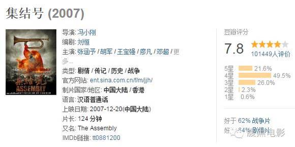 豆瓣评分7.8(101449人评价),好于62%战争片,好于64%剧情片。
