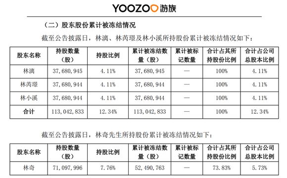 不过,由于林奇手中不少股份已被质押或冻结,三位子女并未获得林奇生前持有游族股份的全部。截至今年三季度,林小溪、林芮璟、林漓均持有游族4.11%股份,而林奇的持股比例在数度被动减持后已降至7.76%。
