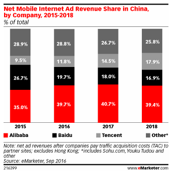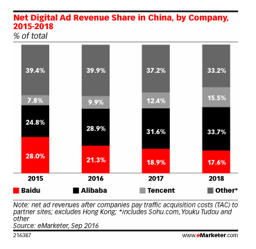 预计2016年阿里巴巴将超百度成中国最大数字广告平台