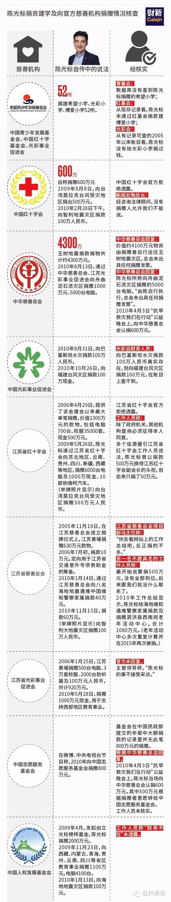 陈光标捐资建学及向官方慈善机构捐赠情况核查,图片来源:财新网