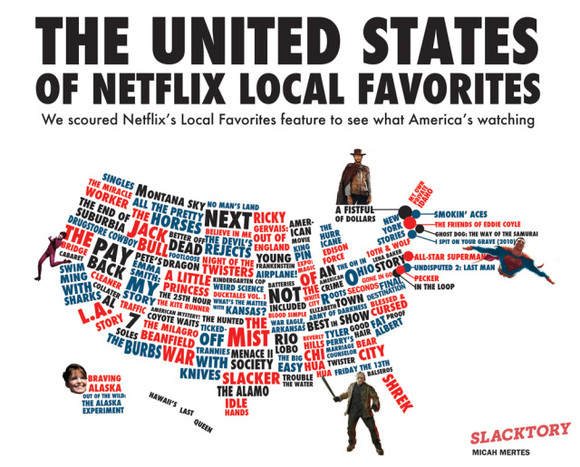 Netflix是世界最大的在线影片租赁服务商,中国人民喜闻乐见的《纸牌屋》也是出自于它。不过看看各州人民众口难调的品味,顿时理解了Netflix令人惊叹的脑洞。