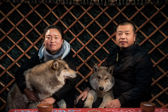 2018年11月11日,内蒙古,张文娟35岁,李金豹38岁,夫妻俩来自内蒙古赤峰市林西县的偏远农村。别看两人年龄不大,但养狼已经是他们第七次创业了。在这之前,他们在乡下开过商店、农机修理部;到包头开大翻斗拉过煤;去天津给煤场送过炉灰;承包修过公路;开过旅游用品商店;卖过玛瑙、玉石。前几次创业起起伏伏,大都失败告终,但是他们夫妻没有气馁,终于靠养狼建景区有了可观的收入,还清了所有的欠账。2018年他们养的狼还参与拍摄了《鬼吹灯》、《忽必烈》、《闪电烈马》等多部电影。
