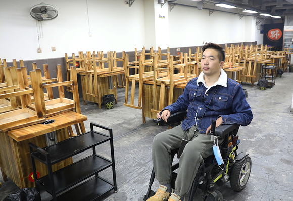 2022年10月25日,西安,遭遇车祸高位截瘫的田野。35岁的田野是西安人,从小活泼好动的他,13岁时便进入武术学校系统学习武术。2004年11月因为一场意外,从此改变了田野的命运。2014年5月,在自家小区门口,田野开起了“田小野串串店”,经过多年努力让自己的串串店扩展到400多平方。
