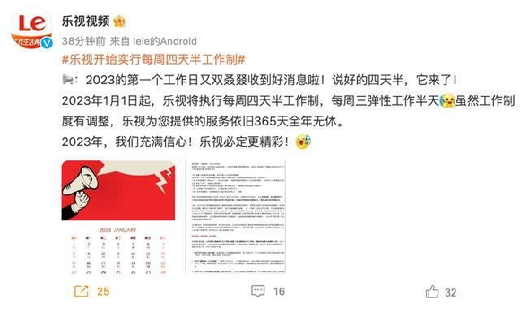 “谁能想到国内最先实行四天半工作制的是乐视。”