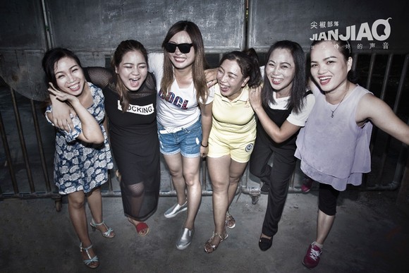 ▲朱丽敏(右五)朱丽琴的妹妹。10年前她来到深圳打工,刚来的时候因为近视,除了一间完全不按劳动法的黑厂外,没有工厂愿意请她。在那黑厂她每天工资只有18元。后来她和工友们一起罢工,终于夺回了合法权益。