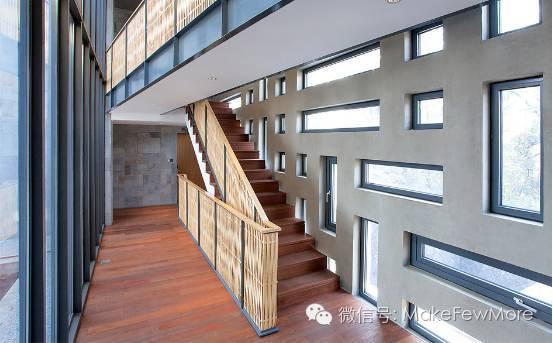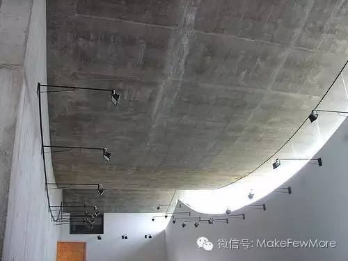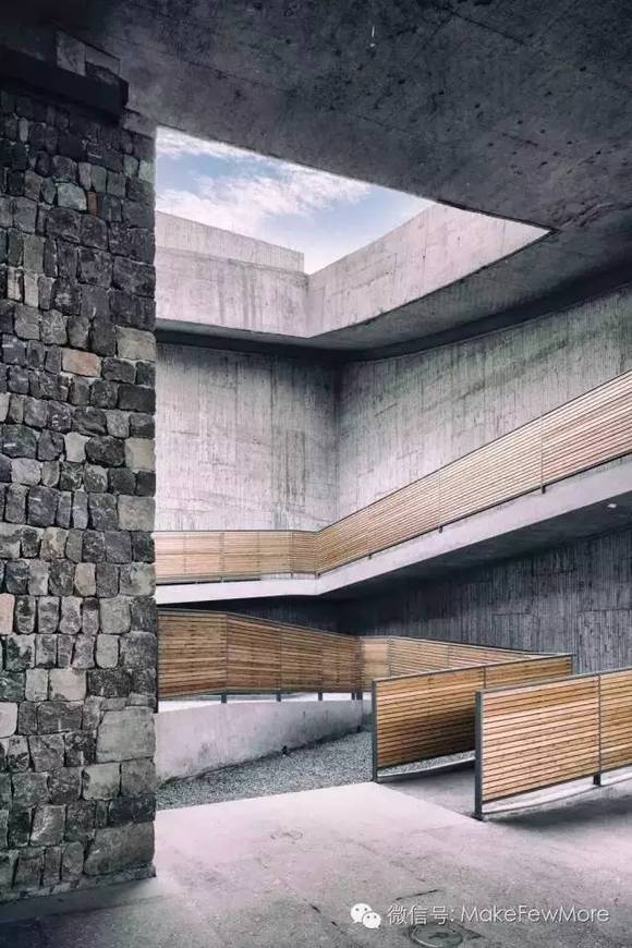 这个三面围合一面开敞的建筑,空间形态似乎在做缓慢、沉重、颠簸着的却没有中断的移动,给身在其中的游客一种自在放空的舒适感。
