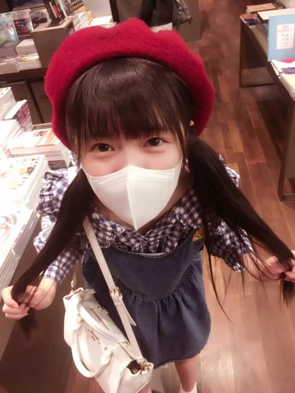 ▲穿着少女服在书店里