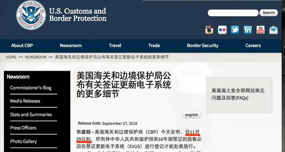 昨天,9月27日,CBP(美国海关和边境保护局)正式发布重要通知:自11月29日起,所有持中华人民共和国护照和10年期签证的旅客,必须在签证更新电子系统(EVUS)进行登记,才能赴美旅行。