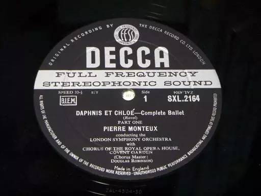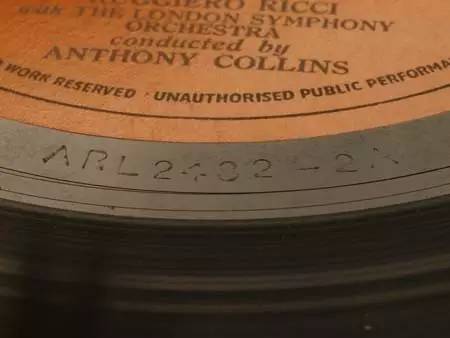 Decca和London的版号可以在标签的下方6点钟方向看到,ARL开头为单声道,ZAL为立体声。接下来为流水序号和Master序号,后面的英文字母是代表负责刻片的工程师,如E是Gordon Parry,G是Ted Burkett,K是Tony Hawkins,W是Harry Fisher等。
