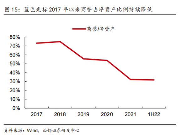 2021年9月,蓝色光标完成与海外战略投资者关于蓝标国际下属四家全资子公司的股权转让,交割后18亿商誉不再纳入蓝色光标合并报表,其商誉降至约30.38亿元,占公司净资产的比重将降至33%以下。