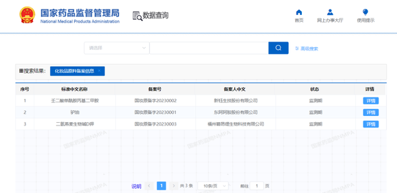 国家药监局原料备案平台显示,2023年刚开局就有3款新原料面市,无疑预示着2023年新原料将迎来新一轮爆发。