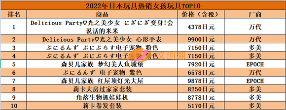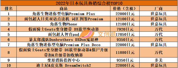 日本玩具信息网站“おもちゃ情報net.”根据市场调查公司GfK Japan给出的日本全国玩具销售店的实际销售数据,对2022年间玩具销售金额最高的各种类玩具TOP10进行了总结。