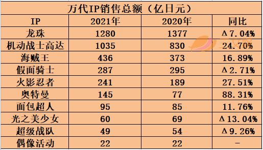2021年,《光之美少女》IP给万代贡献了60亿日元。回顾文创潮解读:万代的2021:收入450亿元,高达和龙珠贡献126亿