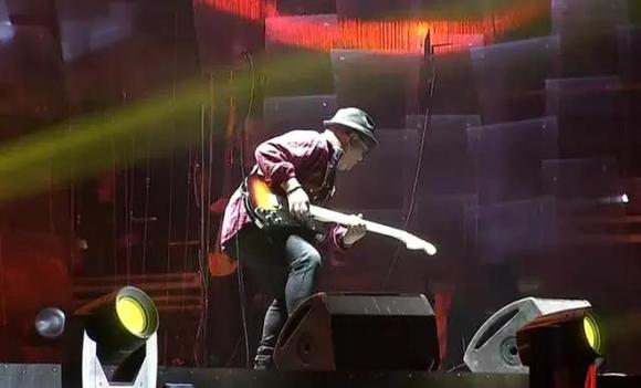 全场演出由新歌《死不回头》开场。老崔身穿修身西装,头顶白色红五星帽,肩挂淡绿色芬达tele,都是标志性的装扮,精神矍铄,一点都没有年过半百的样子。