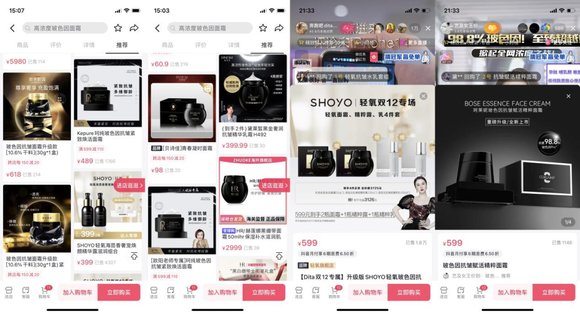 在2020年随着欧莱雅集团的原料专利到期后,玻色因渐渐从独家走向开放,不仅欧莱雅集团旗下的各类玻色因面霜卖的火热,抖音商家也虎视眈眈,市面上开始出现各种与赫莲娜黑绷带”撞脸“的产品。